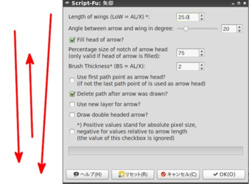 最終更新: 2017-05-15 下記で紹介しているプラグインは、GIMP2.8.22では何故か矢印線の太さを変えられません。 本家プラグイン入手先: http://registry.gimp.org/node/20269 解説記事: http://keicode.com/note/how-to-draw-arrows-with-gimp.php そこで、日…